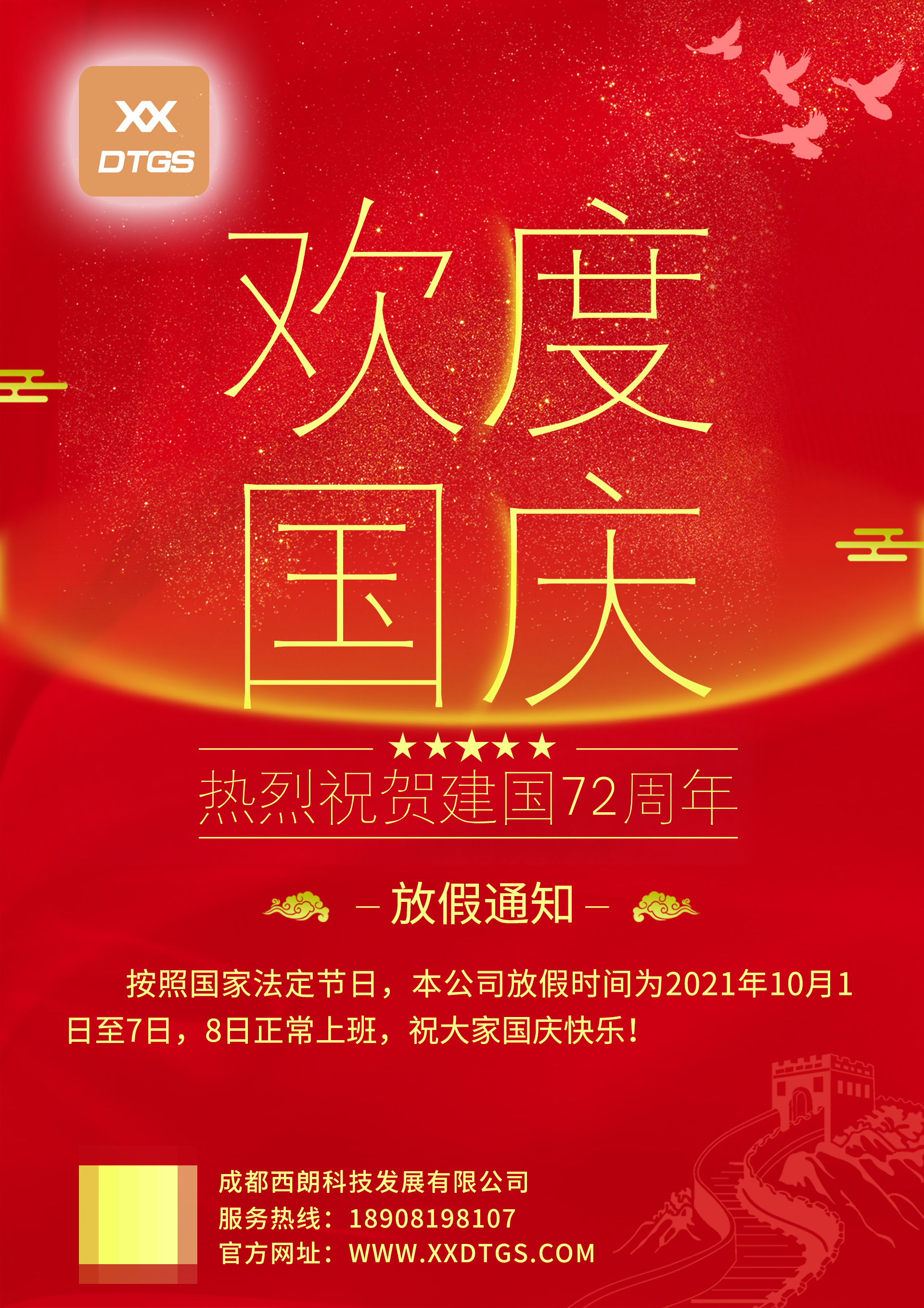 根据国家法定假期的规定,并结合公司实际情况,现对国庆节放假做如下安排: